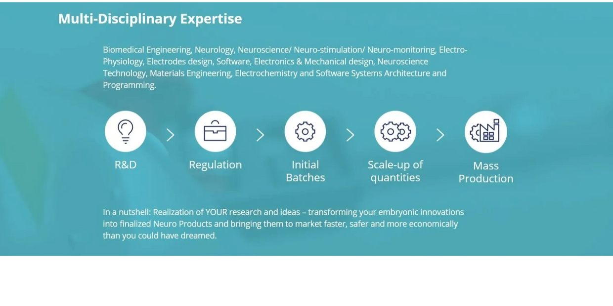 Nova Bioelectrics leads you through each step of the process of bringing neuroproducts to market, so you can focus on your work and become an attractive investment thanks to an experienced partner capable of identifying and solving any issues that could pose a challenge.